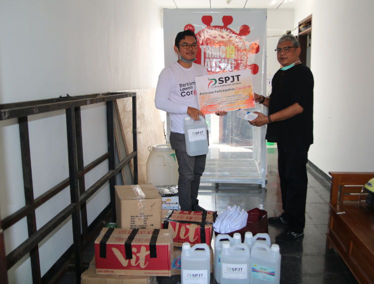 Bantuan PT. SPJT lainnya telah diserahkan oleh unit Tanggung Jawab Sosial dan Lingkungan (TJSLP) SPJT kepada Posko Tim Relawan Melawan Covid-19, diterima oleh Koordinator Posko, Bapak Gunawan Wibisono pada tanggal 03 April 2020 Bantuan yang diserahkan berupa handsanitizer 724 kemasan botol dan 45 liter kemasan Galon, sarung tangan medis 500 buah dan kaos Sosialisasi Pencegahan Covid-19 12 buah untuk tenaga medis, pasien serta relawan, bantuan lainnya berupa APD dan masker akan diberikan secara bertahap. Bantuan yang diberikan merupakan wujud nyata PT. SPJT untuk mendukung pemerintah dalam mengendalikan pencegahan penyebaran pandemik Covid-19 di Jawa Tengah. Diharapkan bantuan yang diberikan dapat membantu para tenaga medis dan masyarakat yang membutuhkan.