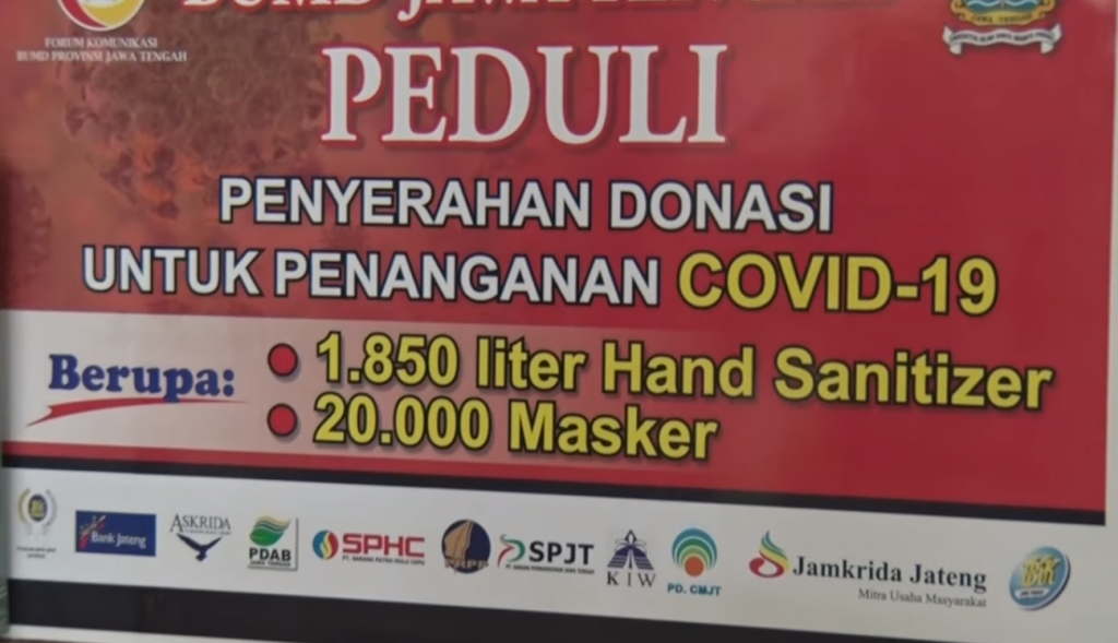 PT. Sarana Pembangunan Jawa Tengah turut serta mendukung upaya Pemerintah Provinsi Jawa Tengah dalam mencegah penyebaran Covid-19 di Jawa Tengah dengan menyerahkan bantuan melalui Forum Komunikasi (FORKOM) BUMD Jawa Tengah yang diserahkan oleh Ketua Forkom BUMD dan diterima oleh Bapak Gubernur Jawa Tengah di Puri Gedeh pada tanggal 01 April 2020.